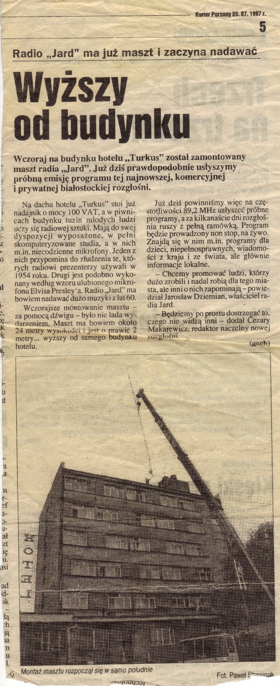16 lat temu Radio Jard zaczęło nadawać w Białymstoku. Prasowe notatki